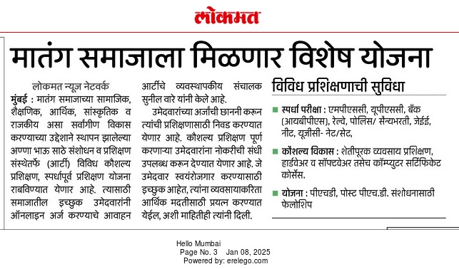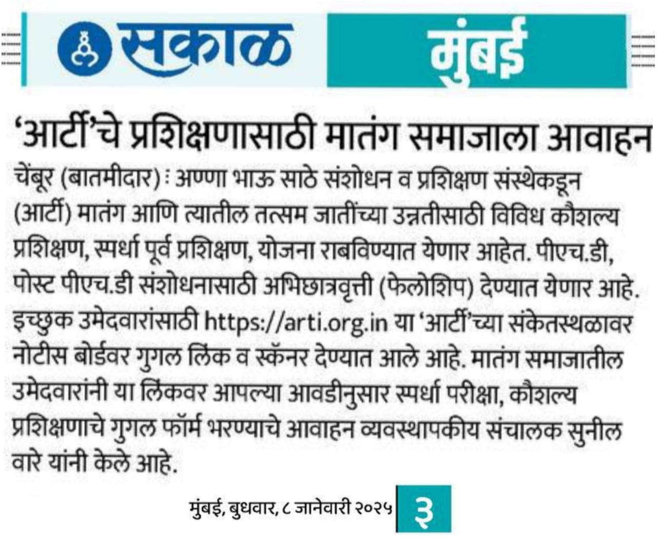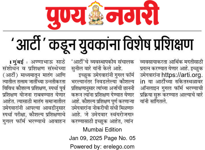 Sakal - An appeal to the Matang community for Arti's training