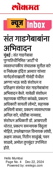 Lokmat- Tributes paid to Sant Gadge Baba at Gownadi, ARTI.